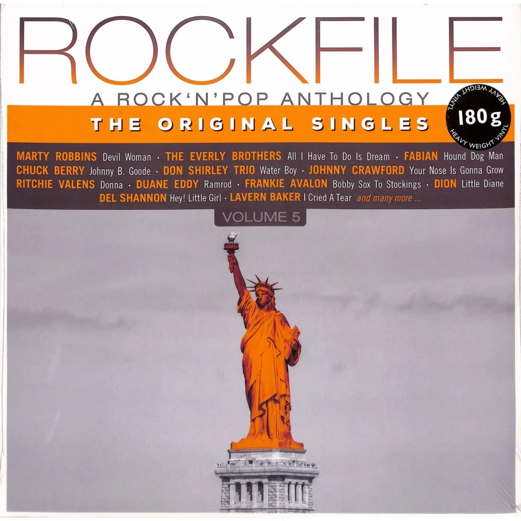 Пятый том антологии «ROCKFILE: A Rock'n'Pop Anthology – The Original Singles» — это виниловая пластинка-сборник с 16 оригинальными синглами эпохи становления рока. Купить винил VARIOUS - ROCKFILE VOLUME 5 стоит ради имён, которые заложили фундамент жанра: Чак Берри, Фэтс Домино, Бен Е. Кинг, Элвис Пресли, Билл Хейли и The Comets, Everly Brothers.